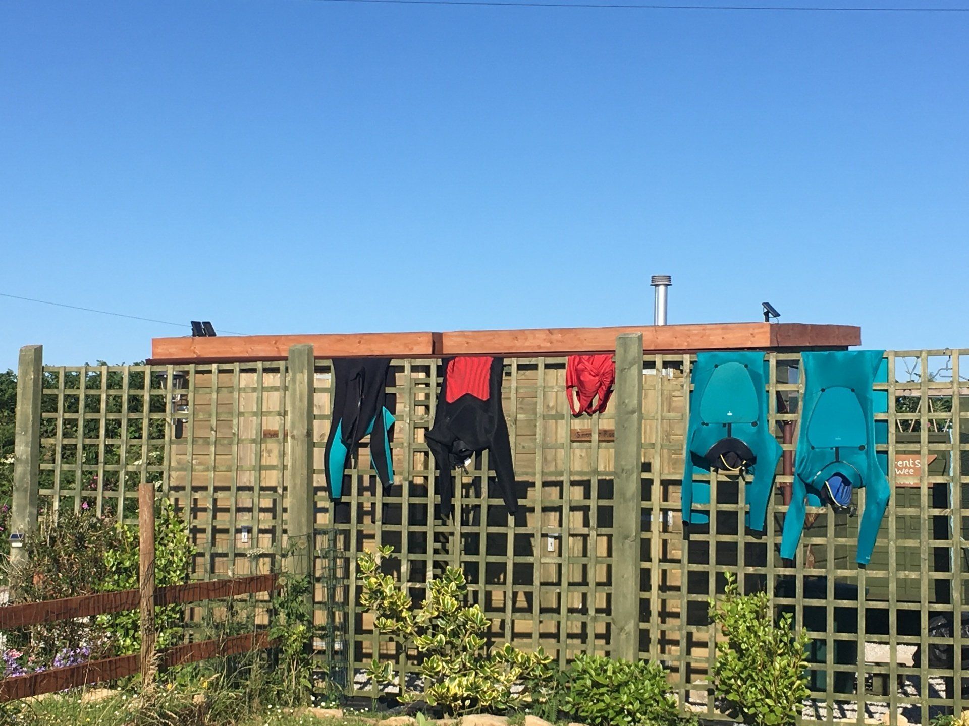 Here we have a large freshwater rain tub to wash of those salty Sandy wetsuits and toes, it certainly makes life so easy when you’ve just come off the beach